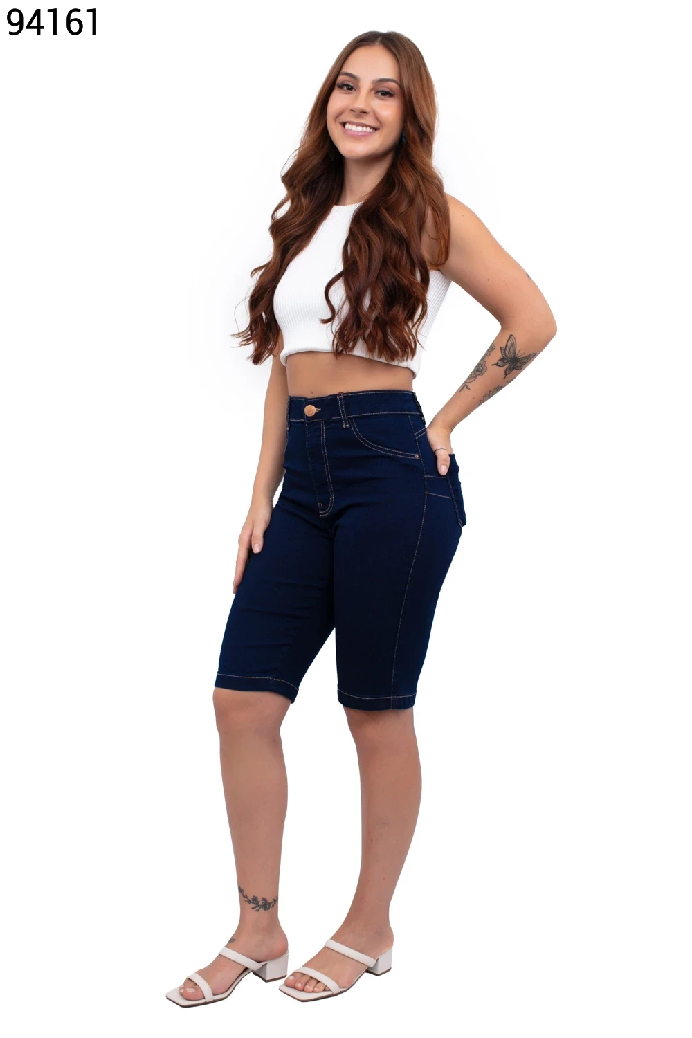 Ref.95252Bermuda Feminina Ciclista Classic Alta com Bordado