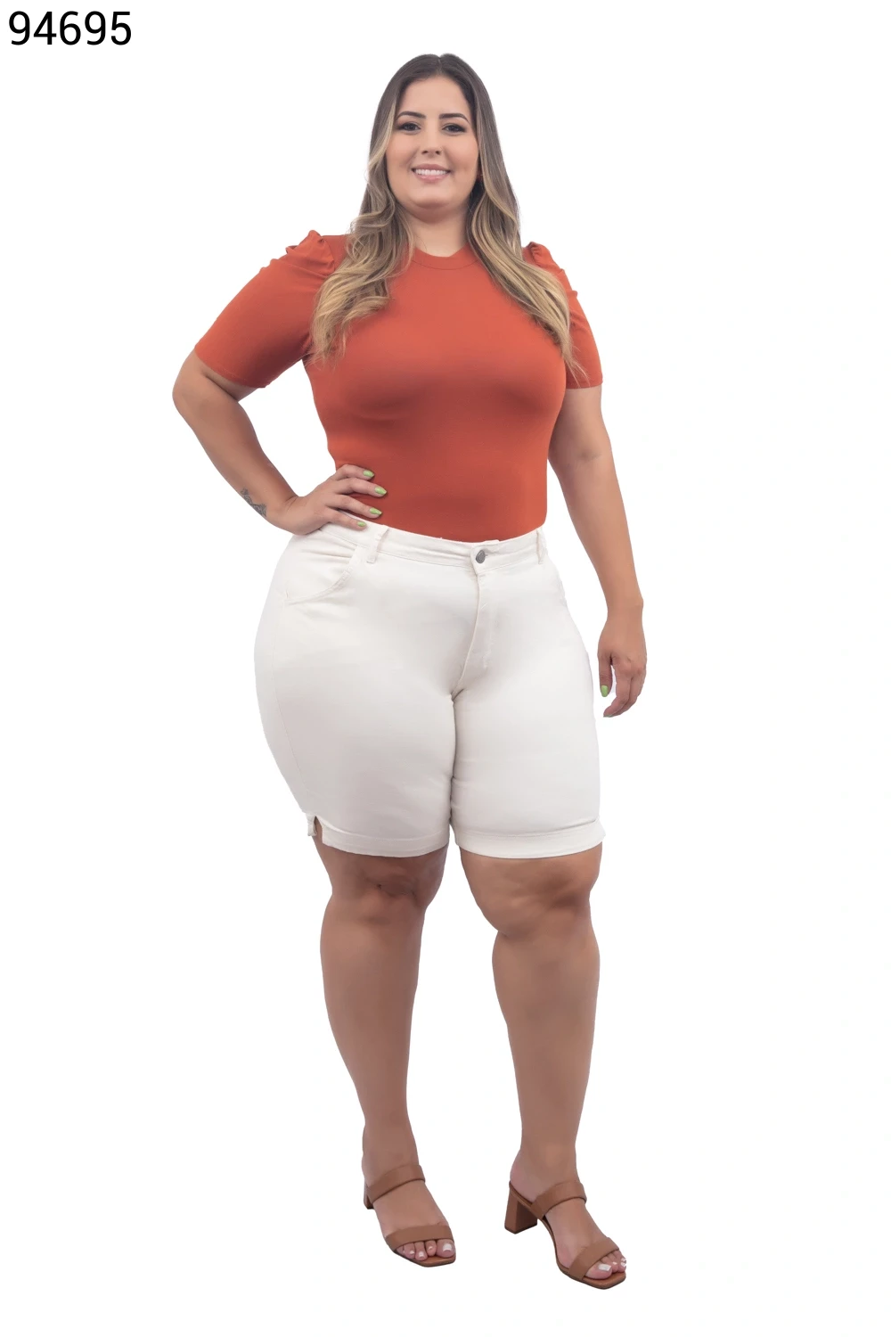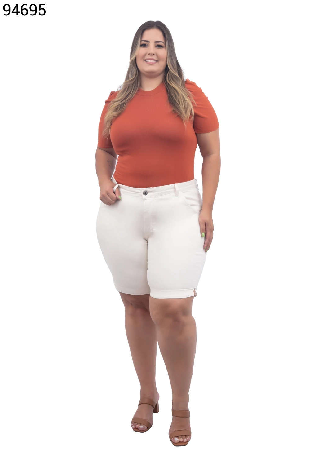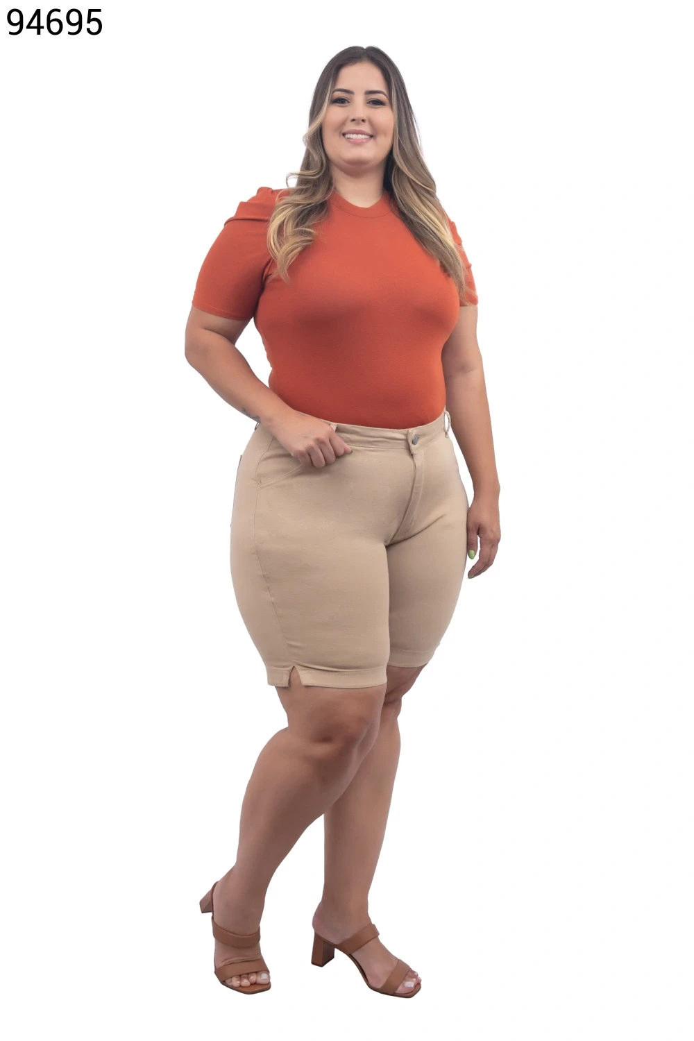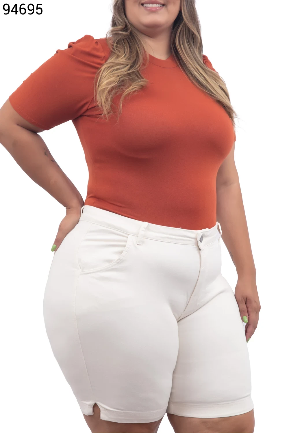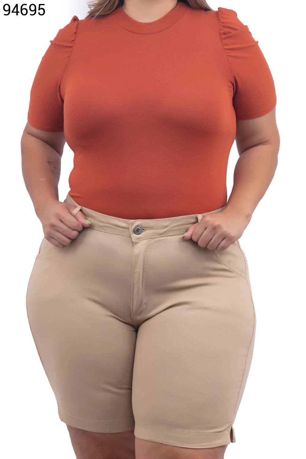 Ref.95231Bermuda Feminina Plus Size Meia Coxa Com Cinto - 94794