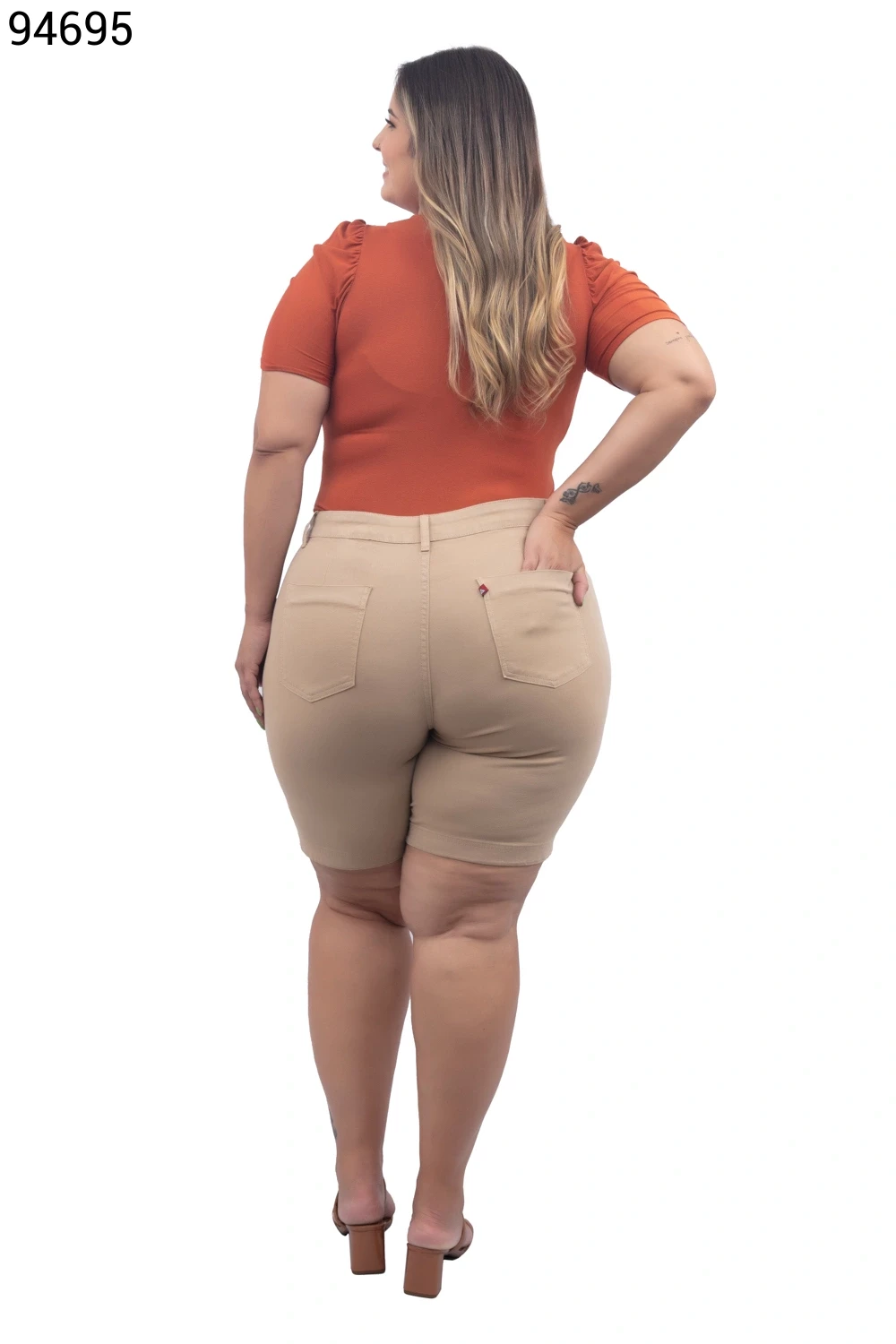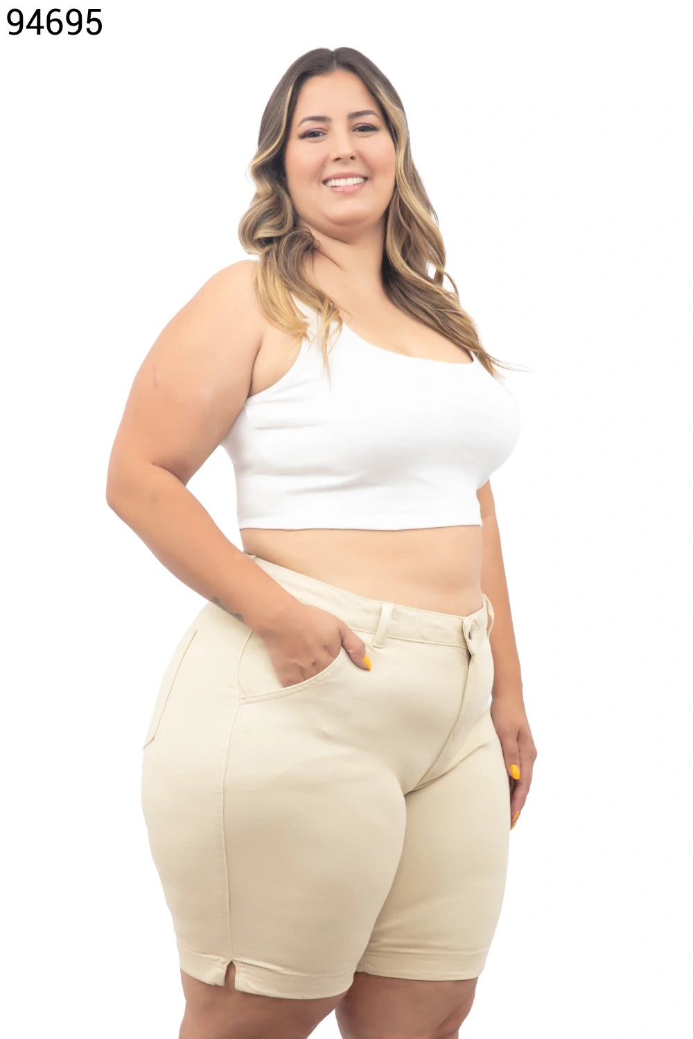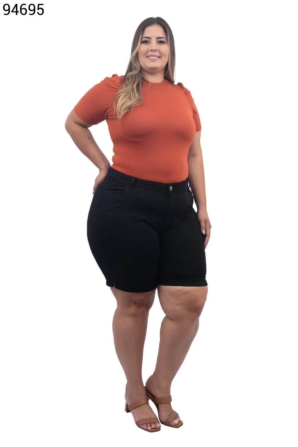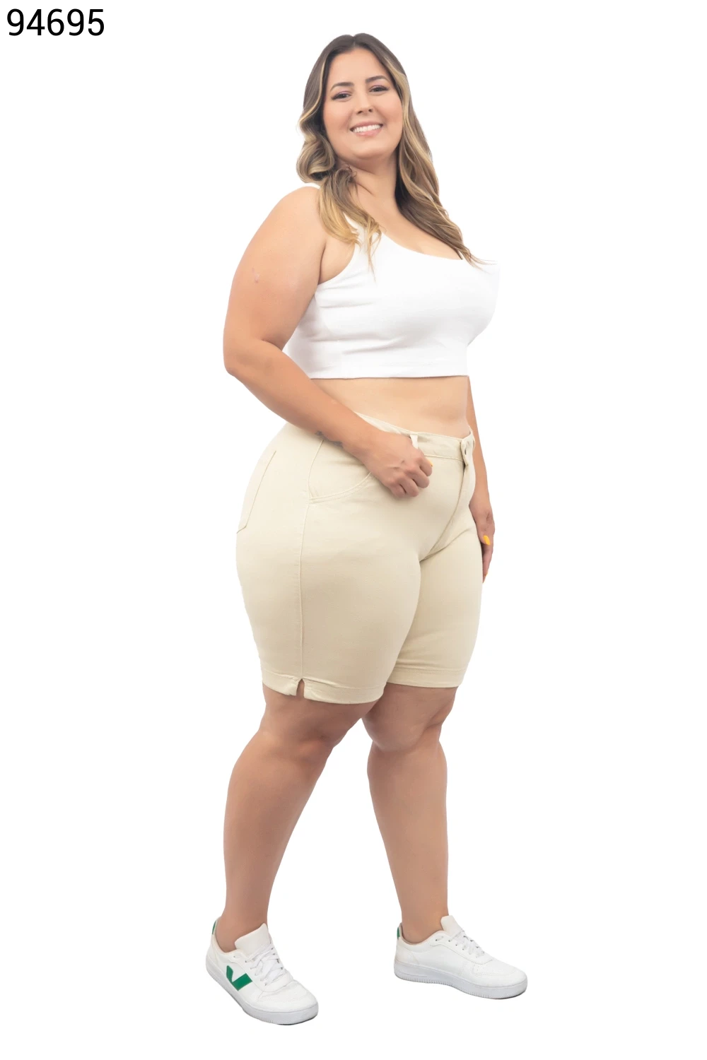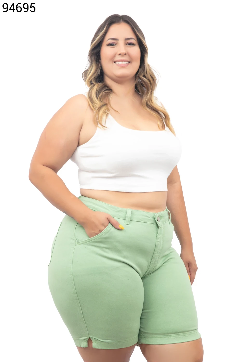 Ref.95231Bermuda Feminina Plus Size Meia Coxa Com Cinto - 94794