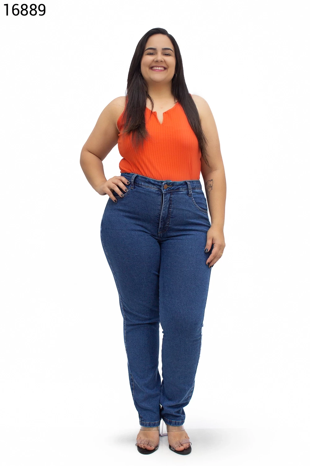 Ref.16389Calça Feminina Plus Size Mom Five Pockets