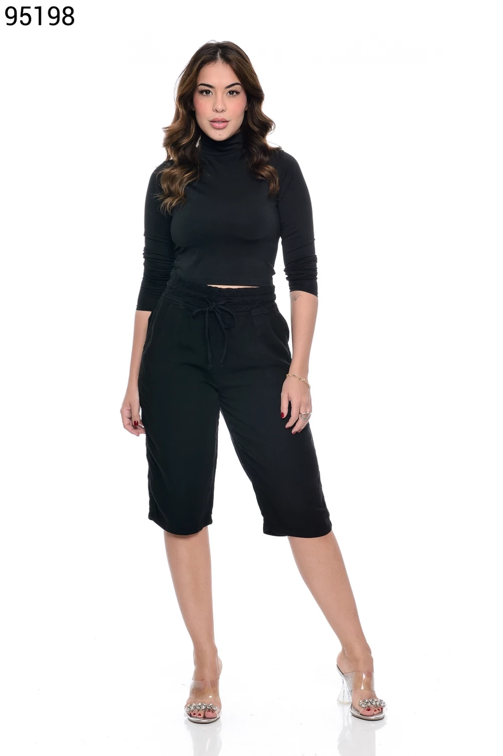 Ref.95359Bermuda Feminina Meia Coxa com Cordão no Cós
