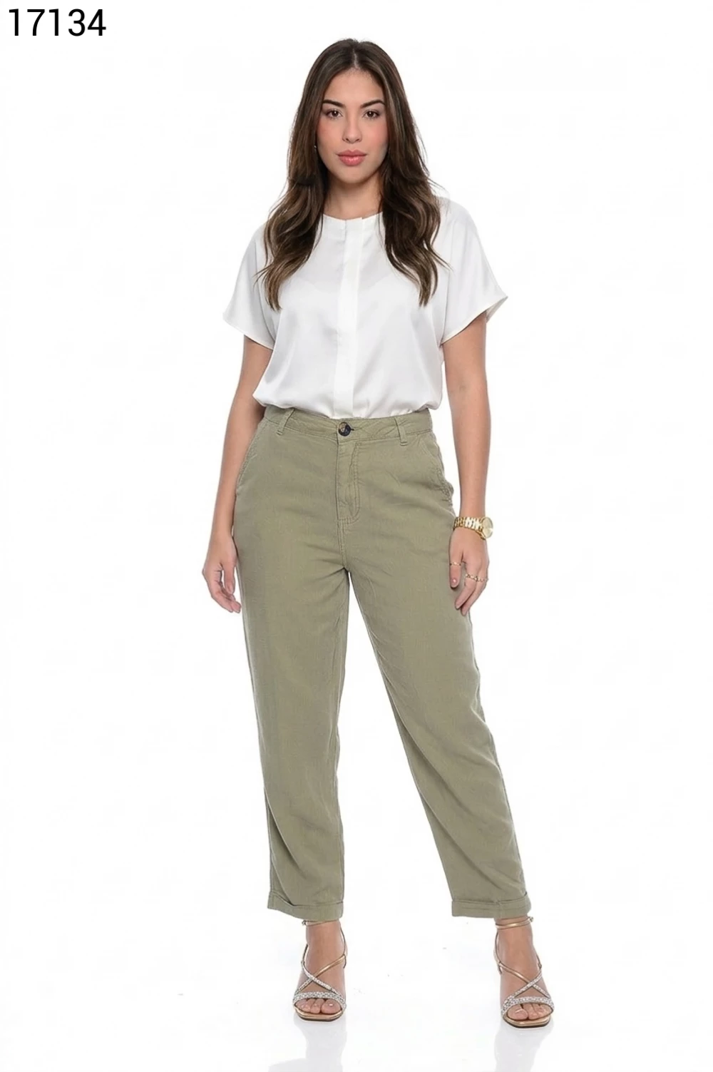 Ref.16095Calça Feminino Pantalona Regular com Bolso