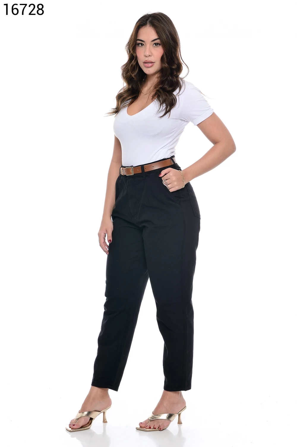 Ref.16226Calça Feminina Wide Leg Básica com Cinto - 16624