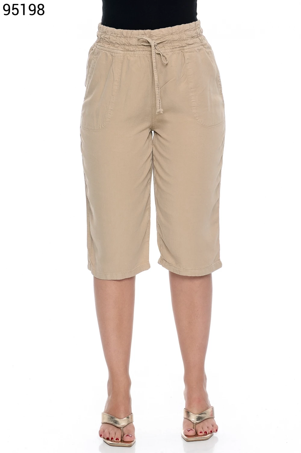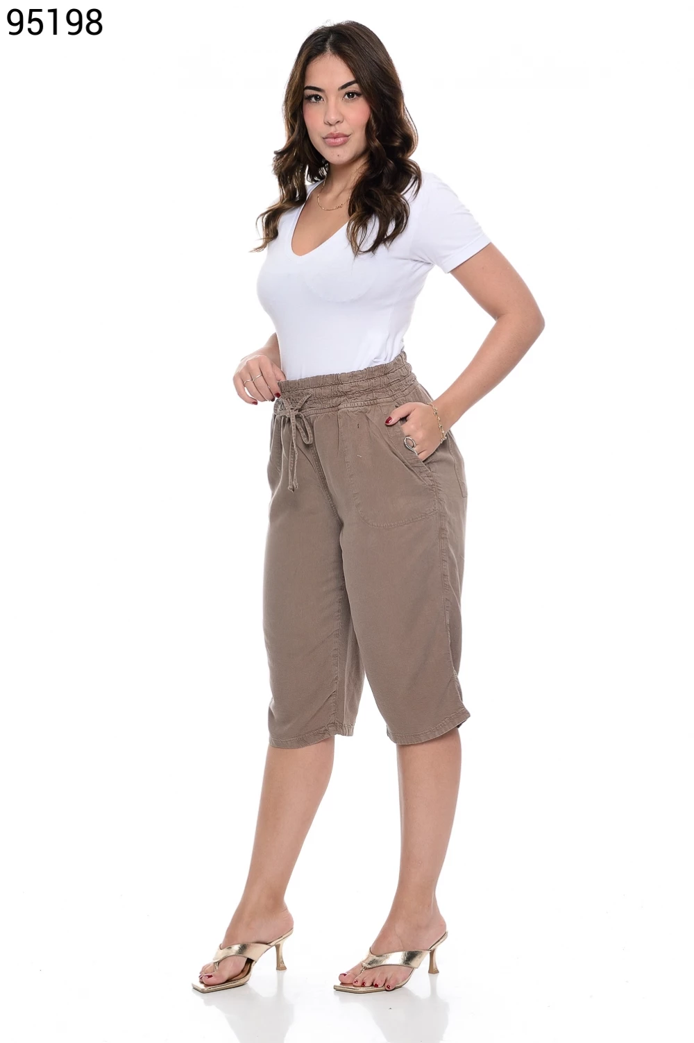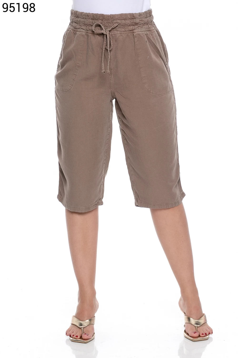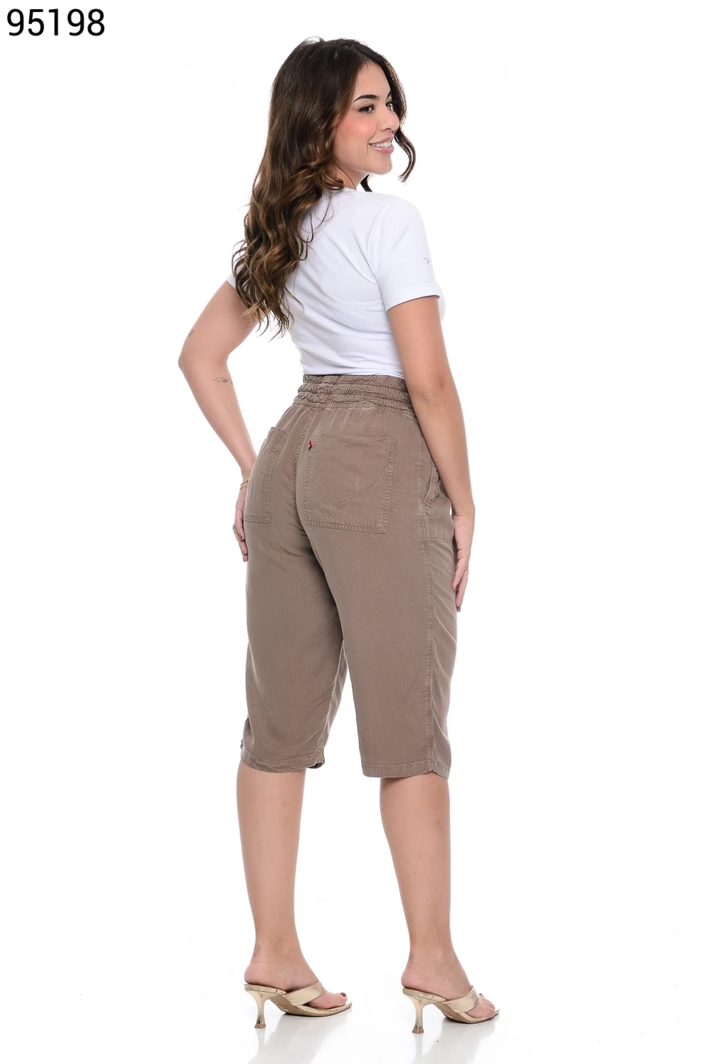 Ref.95130Bermuda Fem. Soltinho Regular com Elástico e Cordão no Cós