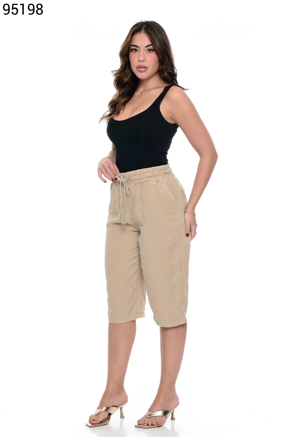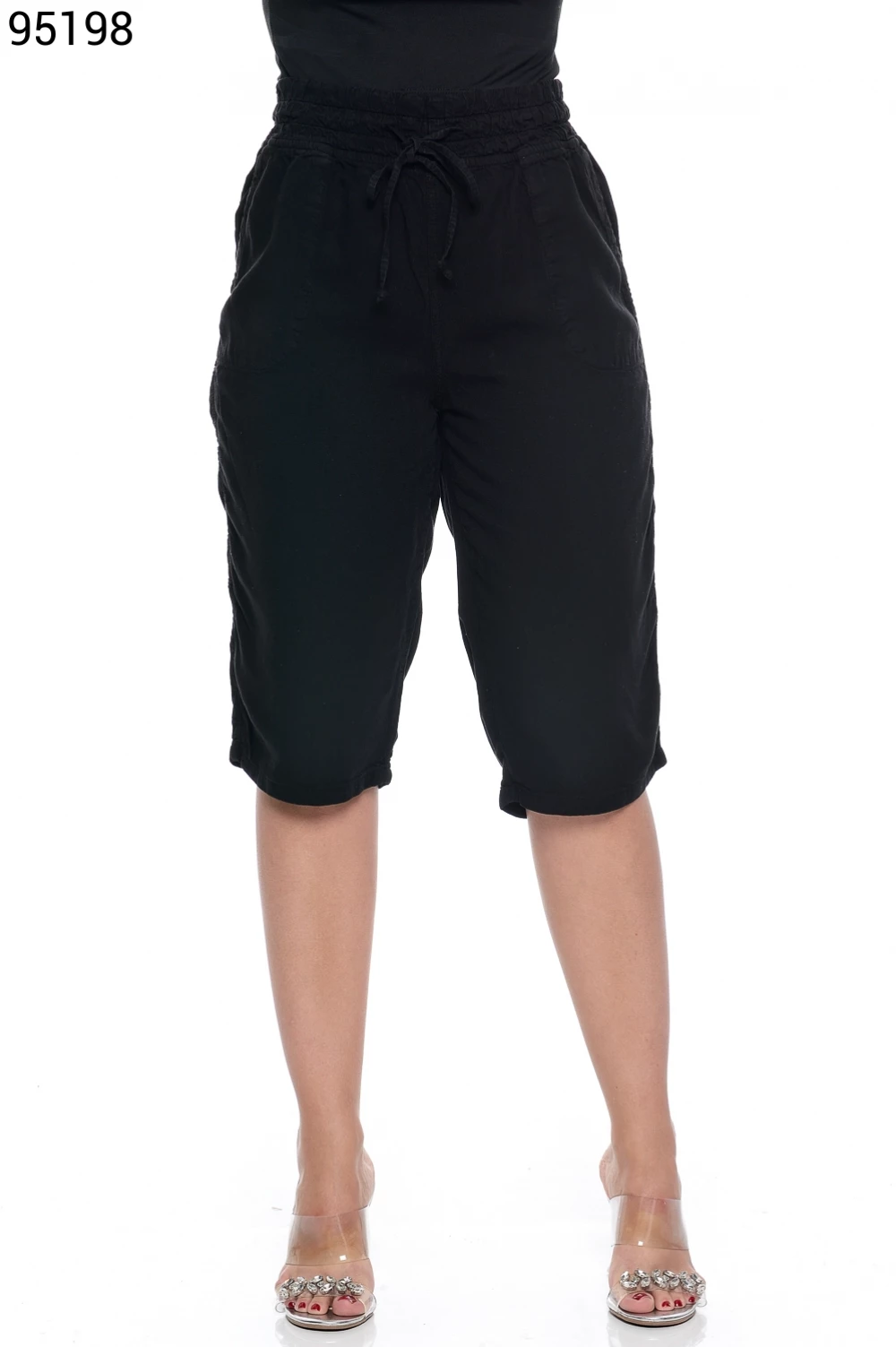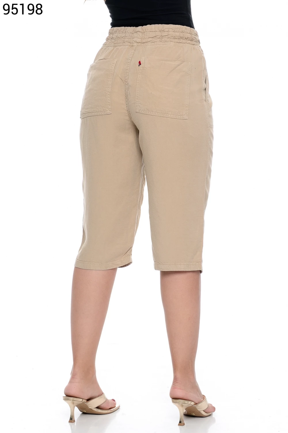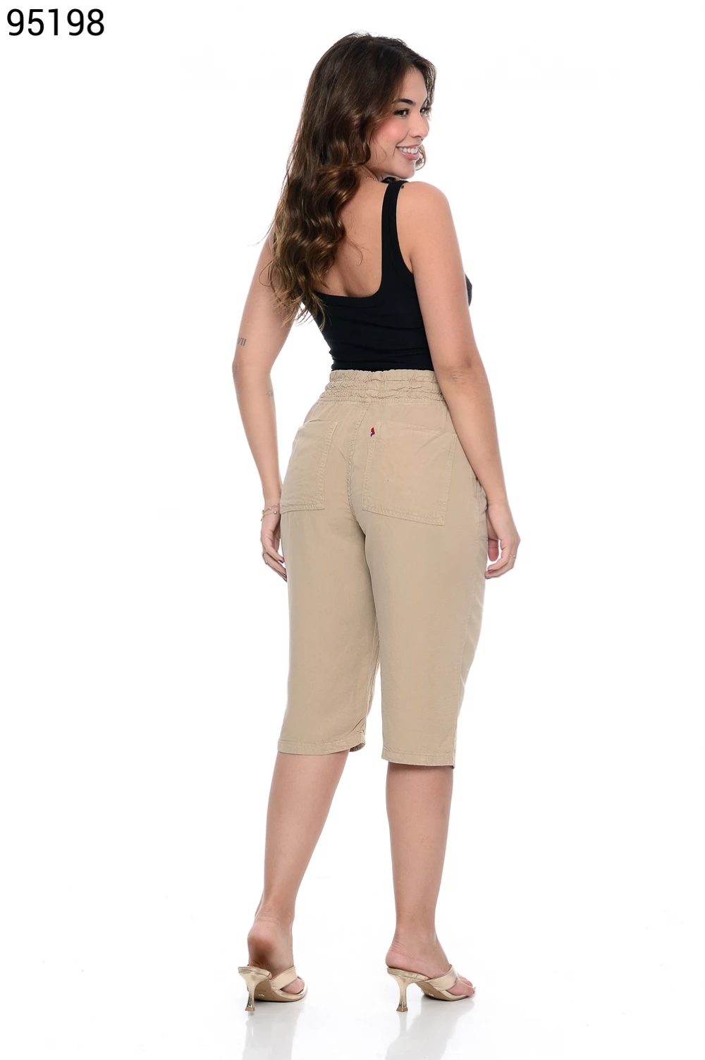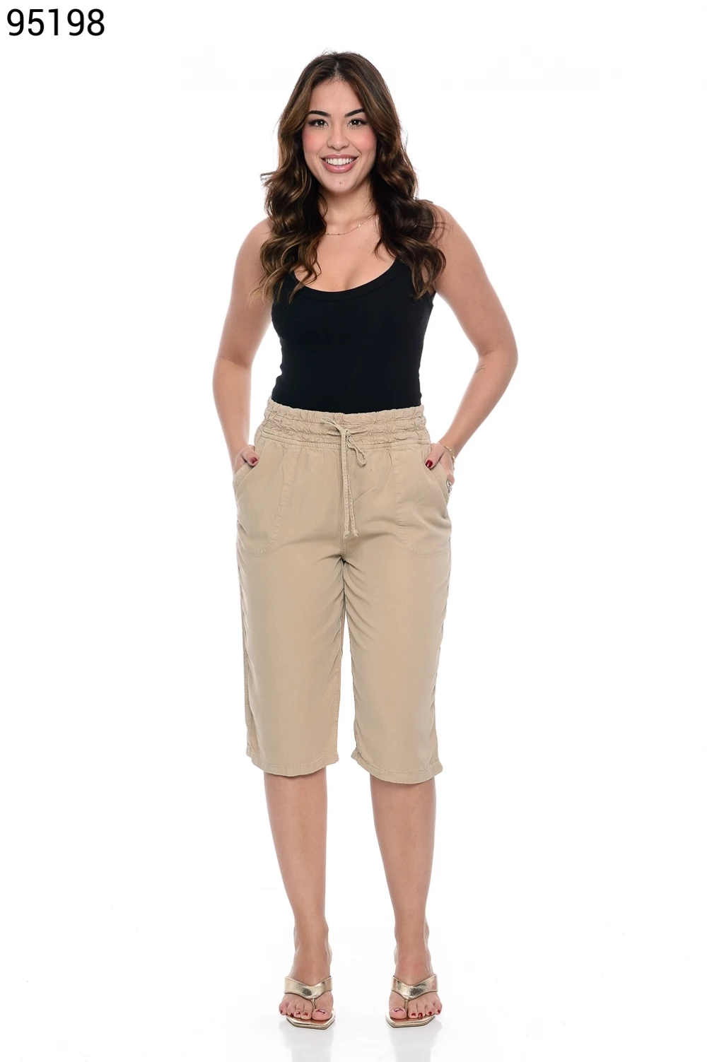 Ref.95130Bermuda Fem. Soltinho Regular com Elástico e Cordão no Cós