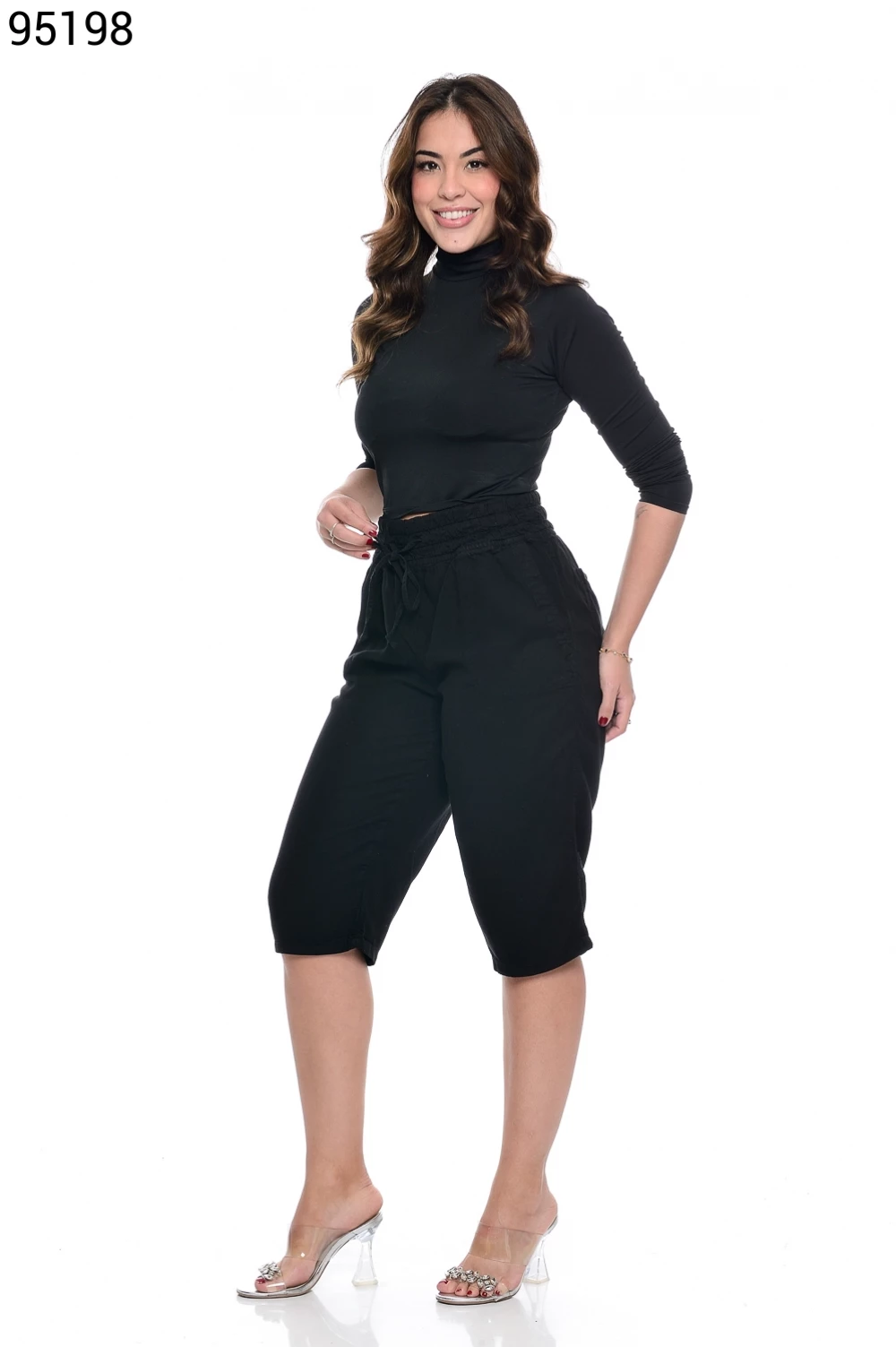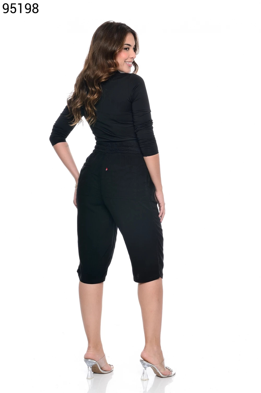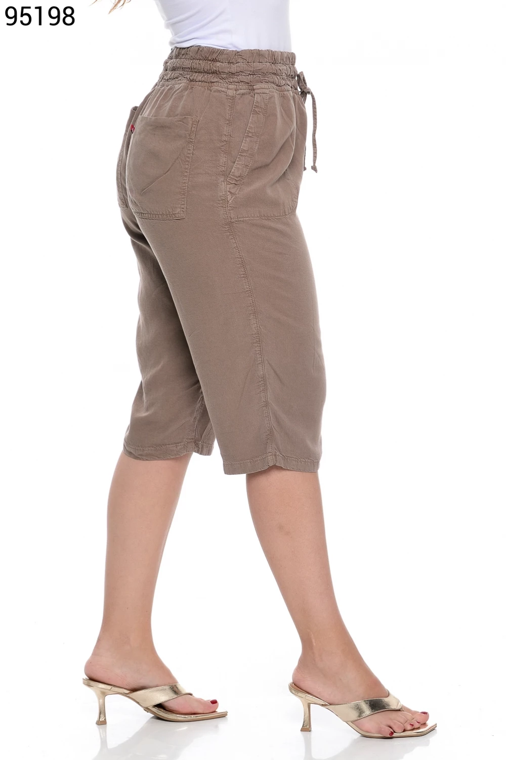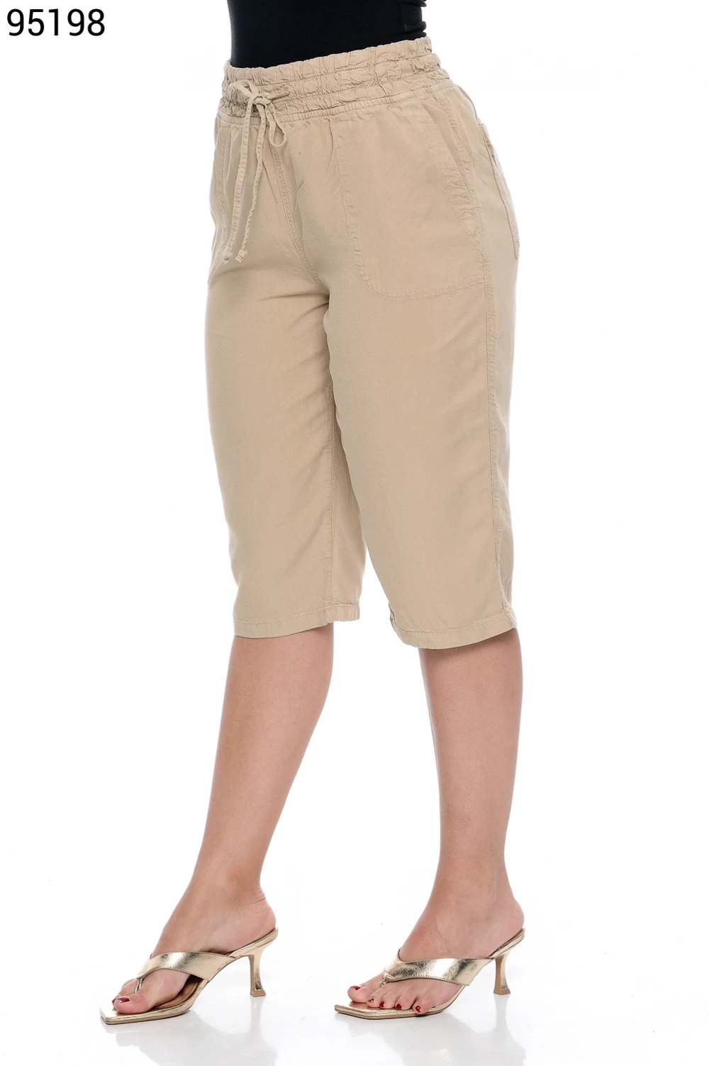 Ref.95130Bermuda Fem. Soltinho Regular com Elástico e Cordão no Cós