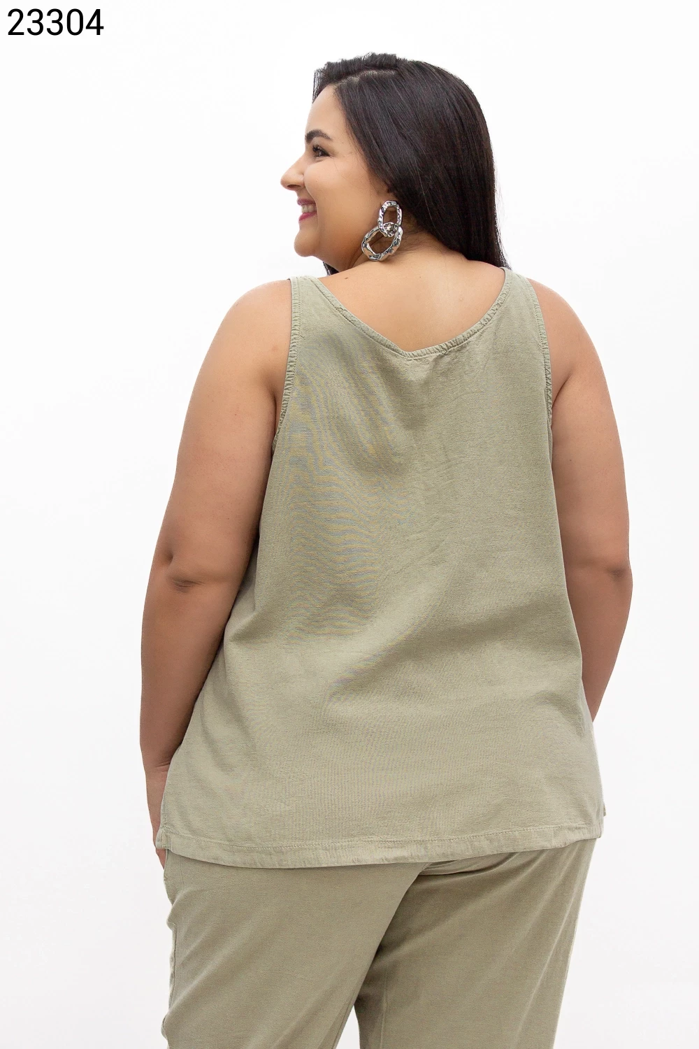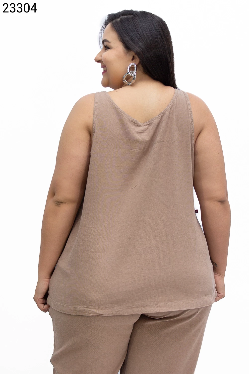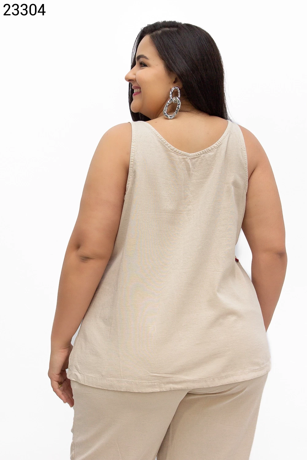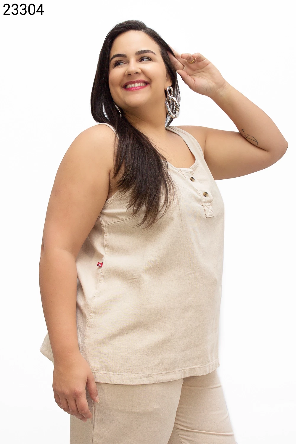 Regata Cavada Plus Size com Botões na Vista - 23306
