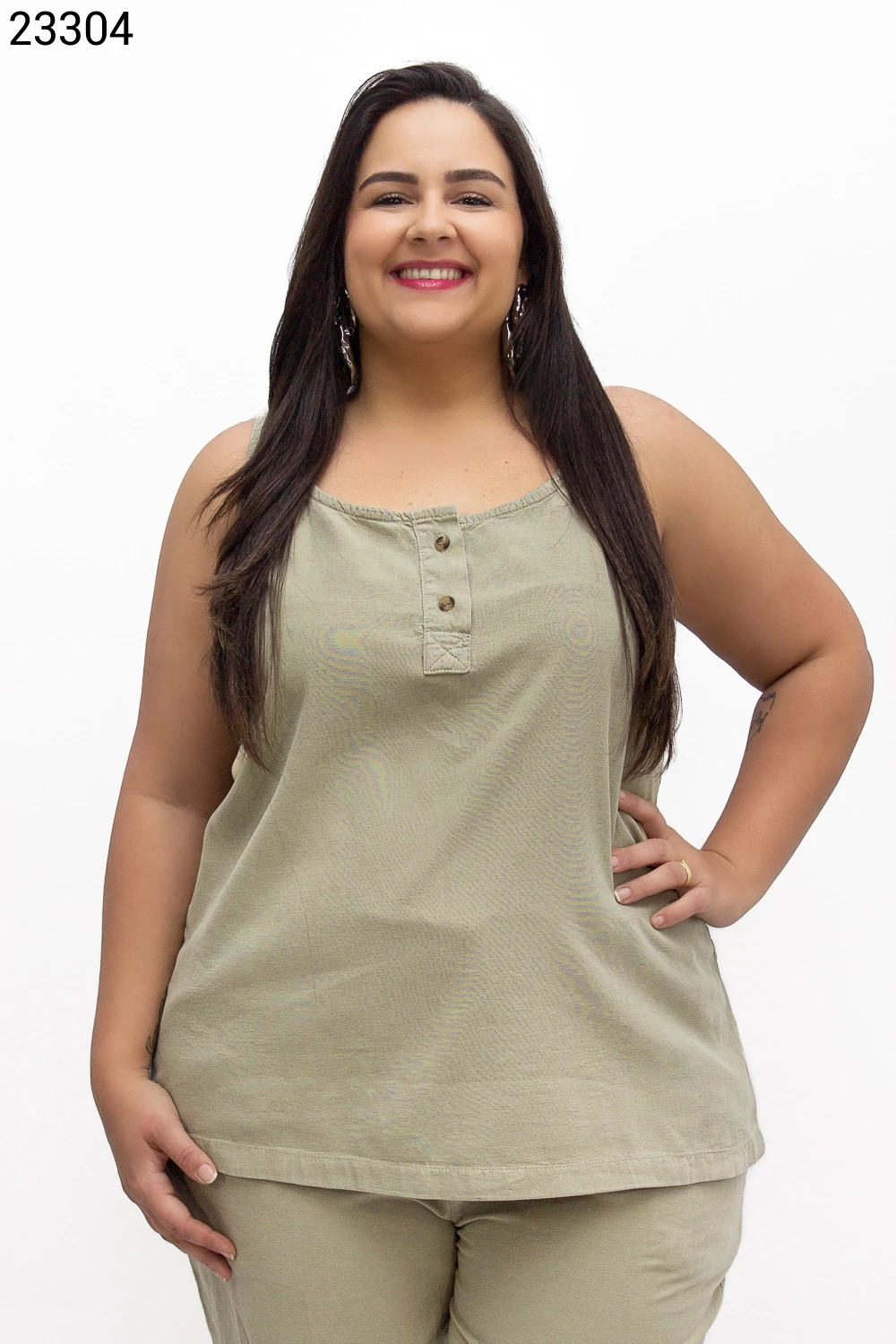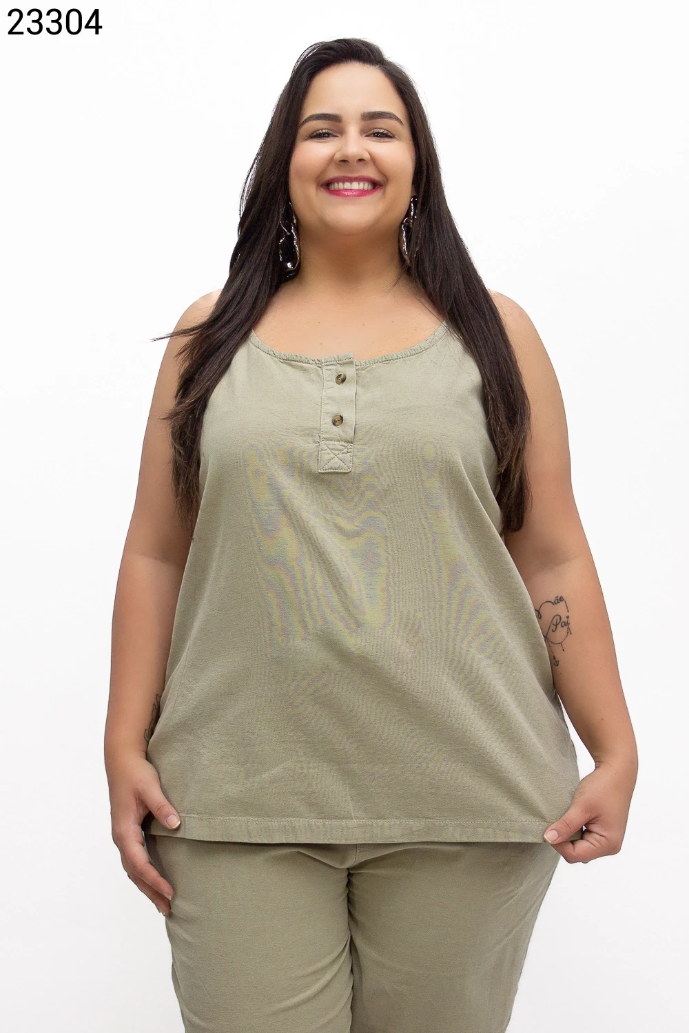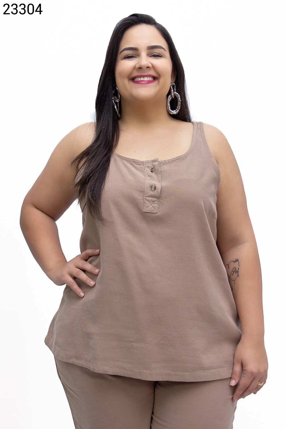 Regata Feminina Plus Size Cavada com Botões Na Vista