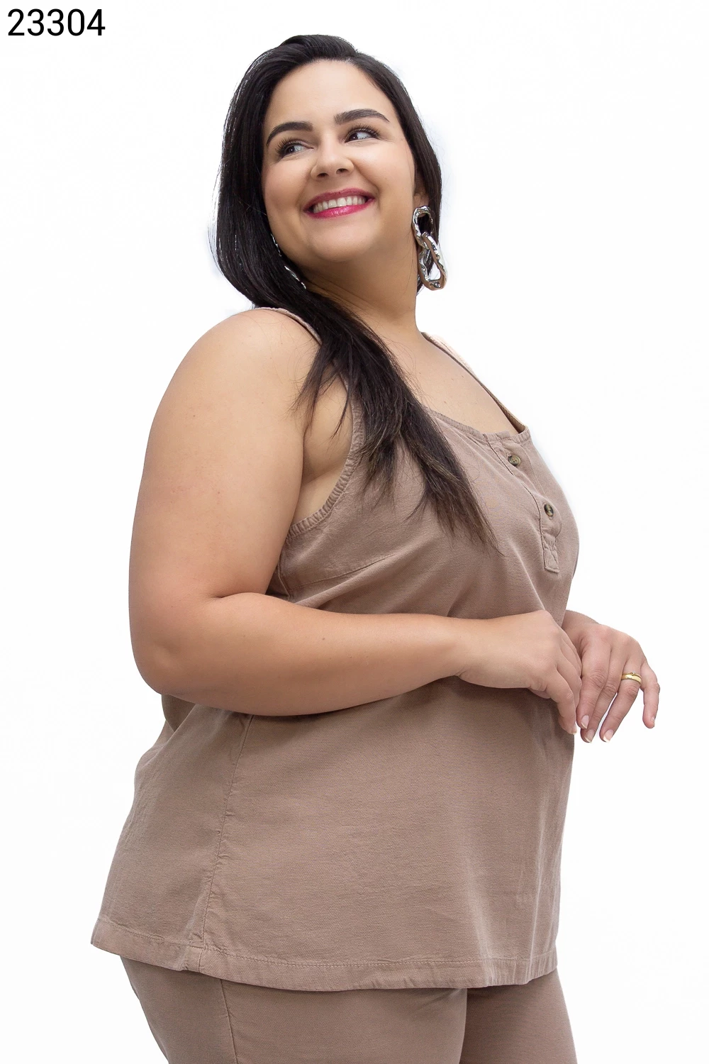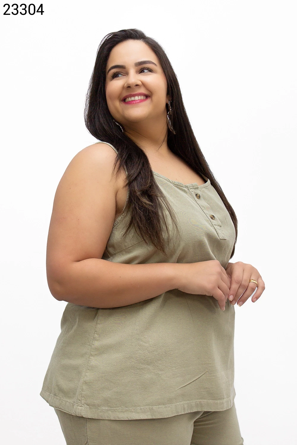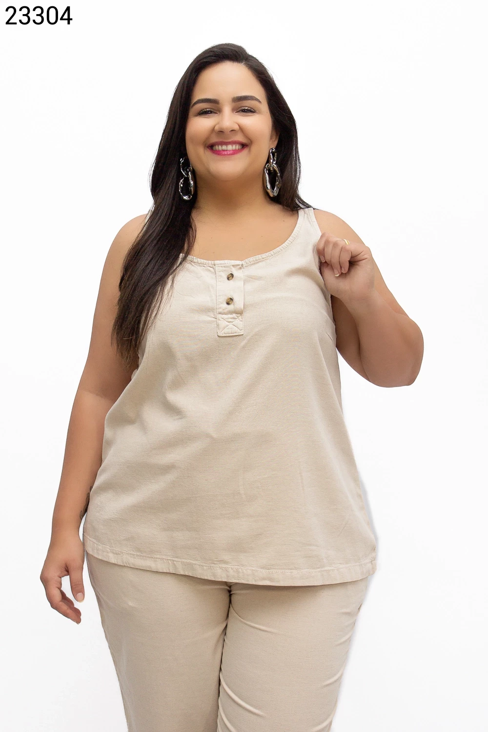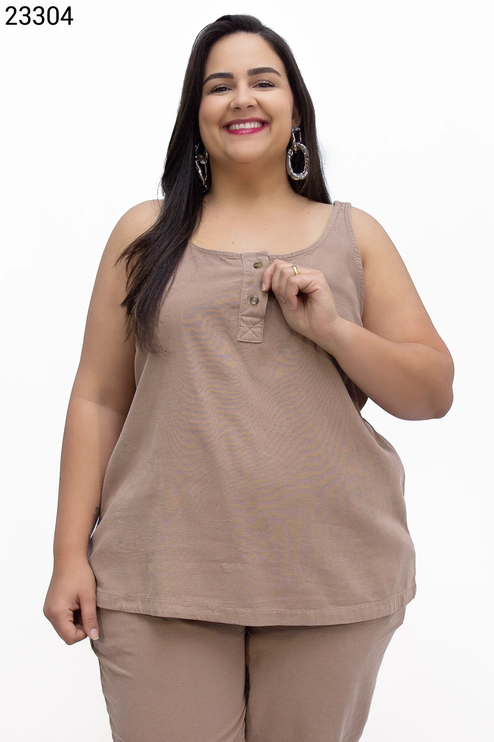 Regata Feminina Plus Size Cavada com Botões Na Vista