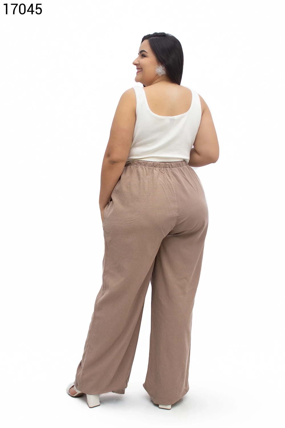 Calça Fem. Plus size Wide Leg Slim com Cordão do Mesmo Tecido
