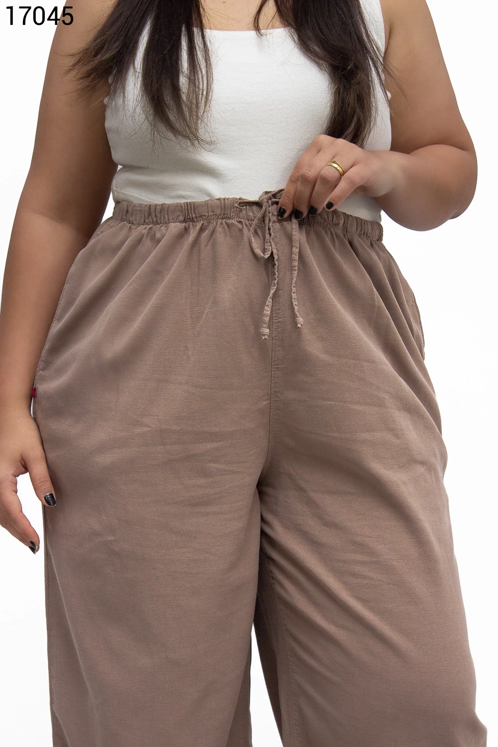 Calça Feminina Plus Size Wide Leg Slim com Cordão No Cós