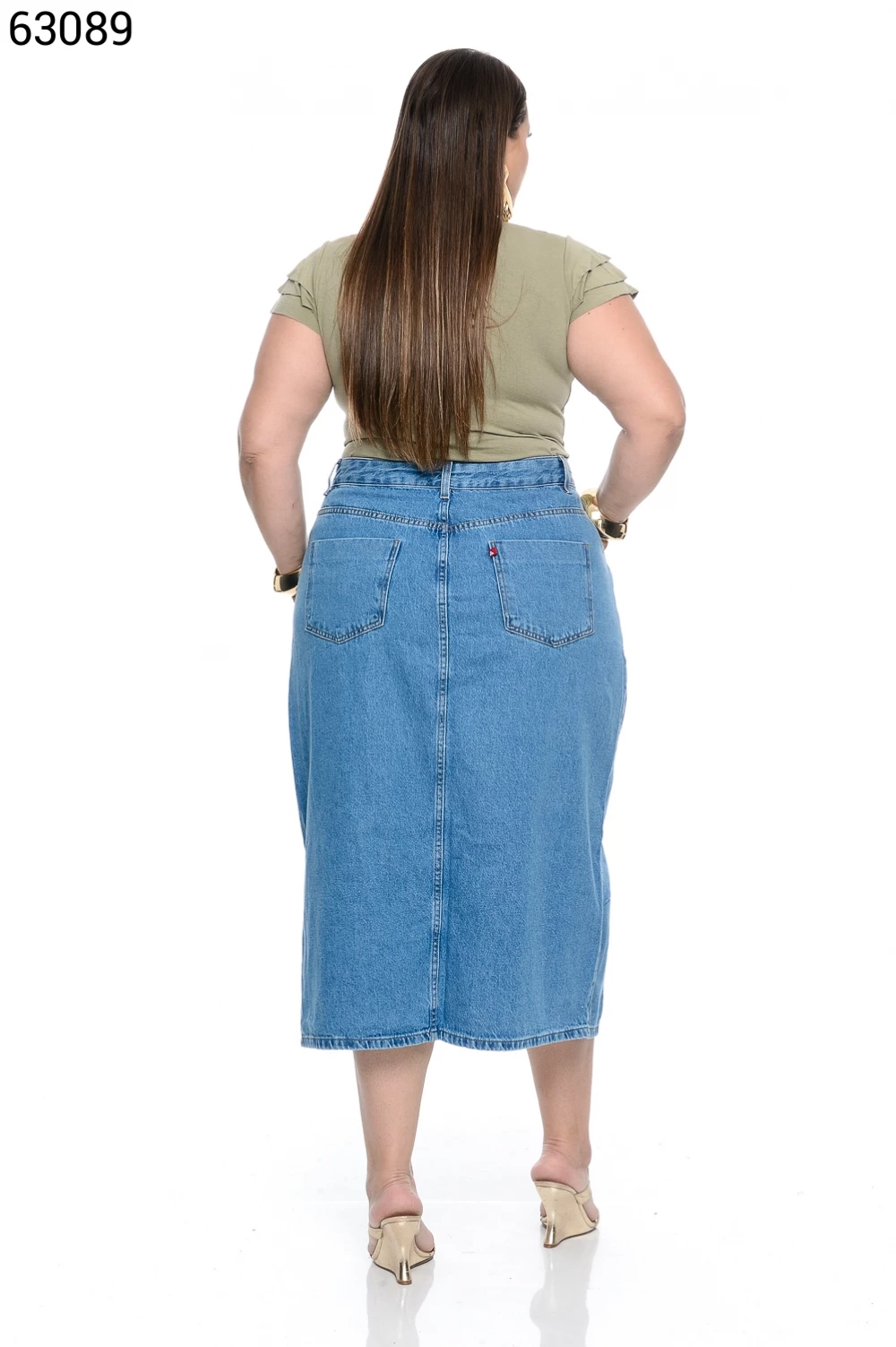 Saia Feminina Midi Plus com Botões
