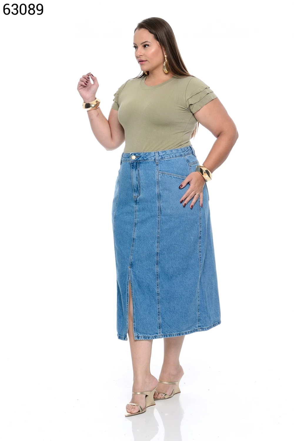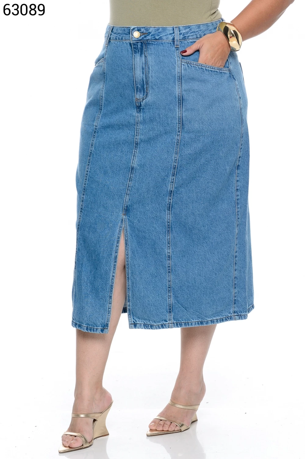 Saia Feminino Midi Plus Size Com Recortes
