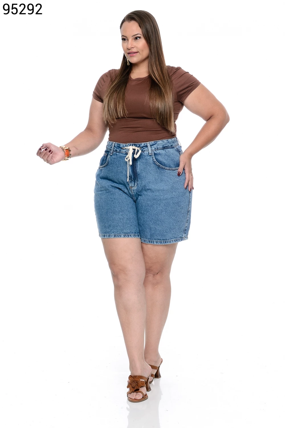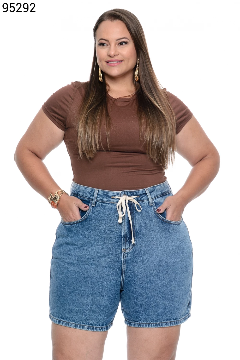 Ref.95200Bermuda Feminina Plus Size Soltinha com Elástico e Cordão - 94786