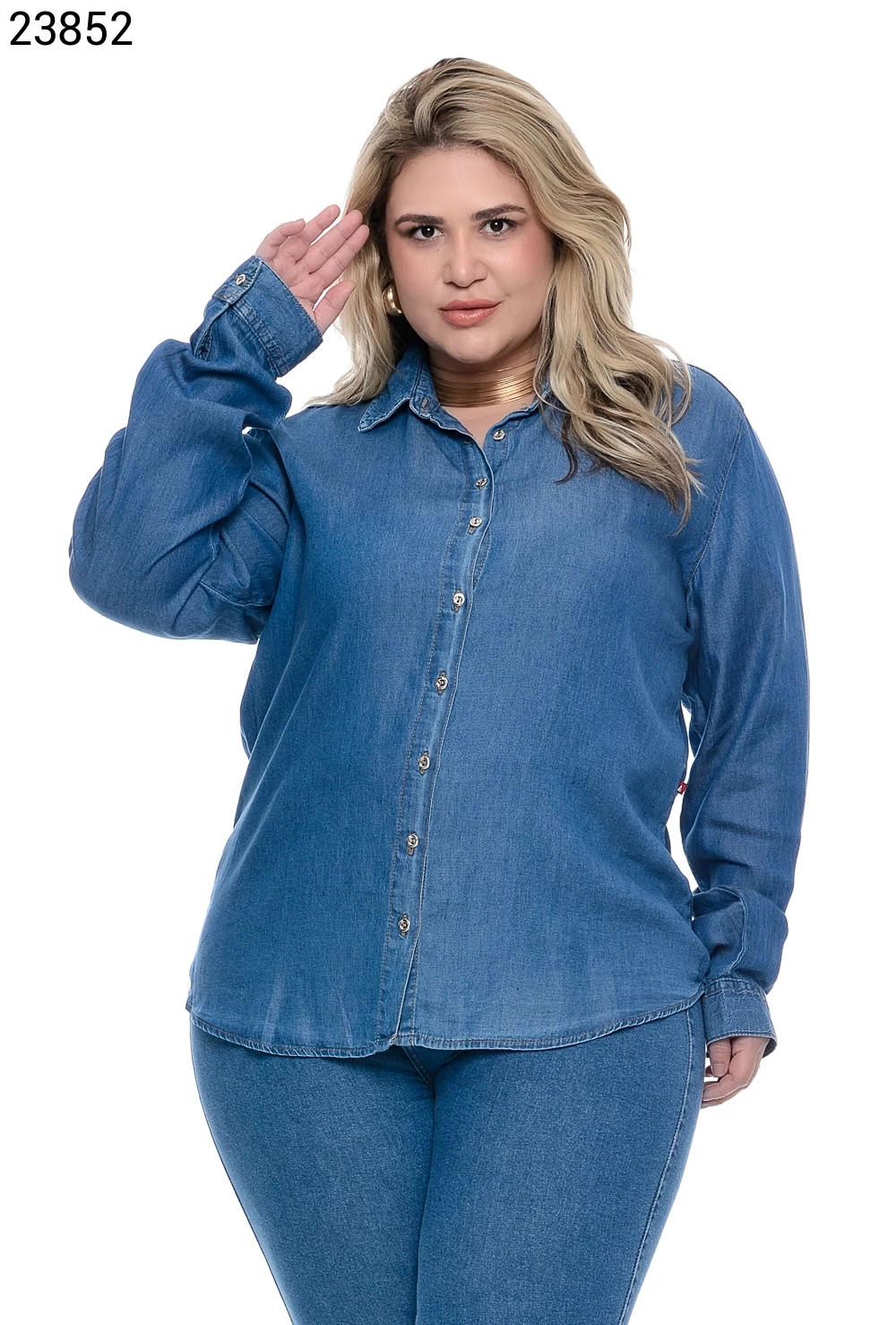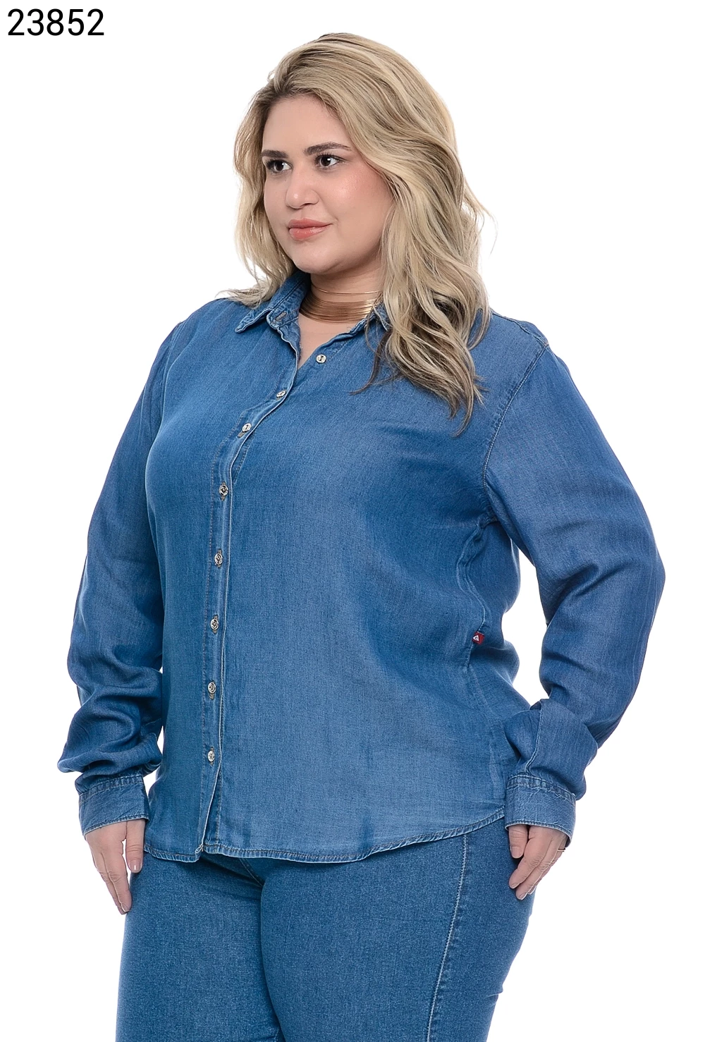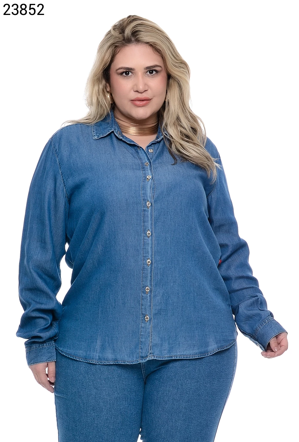 Camisa Feminino Camisa Plus Size Com Botões Na Vista