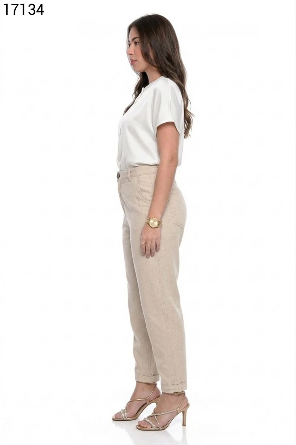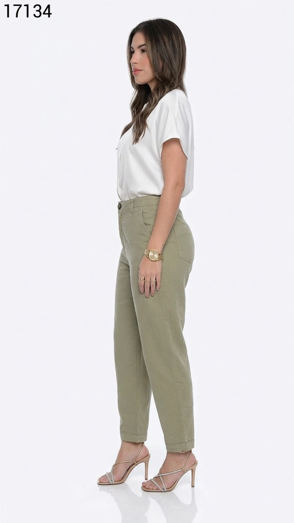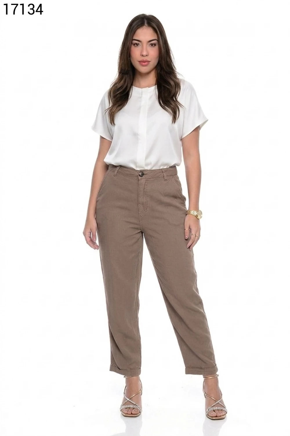 Ref.17153Calça Feminina Mom Cinco Bolsos e Cinto de Couro - 16420